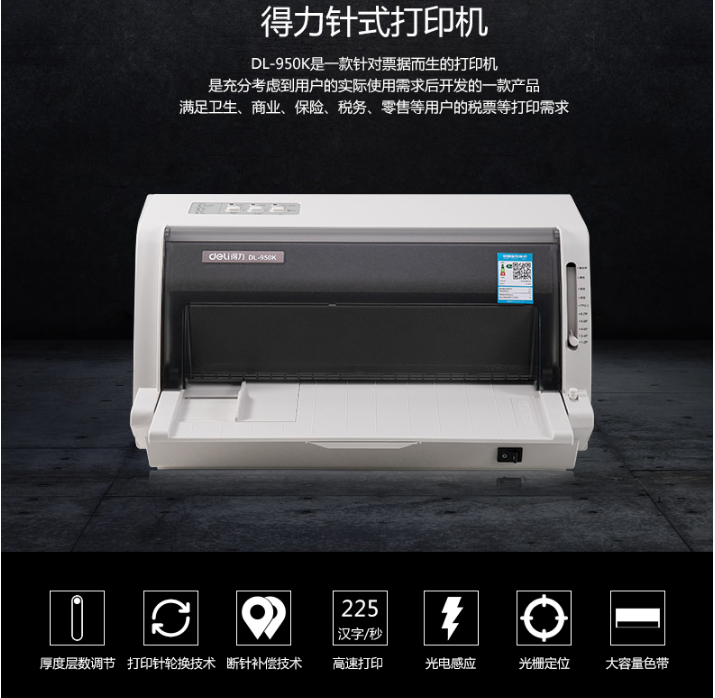 商品名称:得力(deli)DL-950K 针式打印机 营改增税控发票打印机(80列) 灰色 商品编号:ECS012499 品牌:得力/deli 上架时间:2019-07-10 商品毛重:0克 型号:DL-950K 如果您发现商品信息不准确,欢迎纠错;如果您发现有比51文具价格更低的,欢迎举报