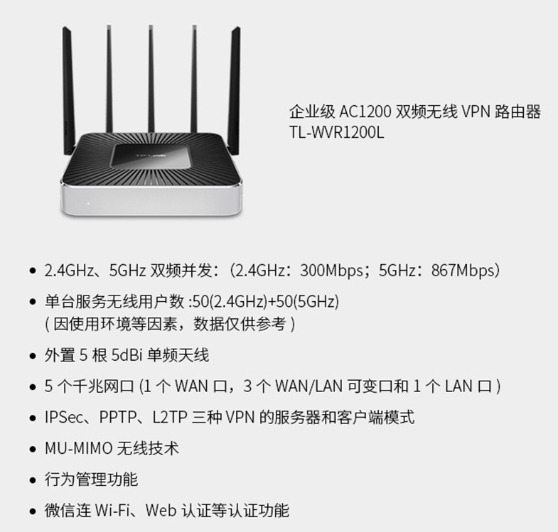 商品名称:TP-LINK TL-WVR1200L 1200M双频企业级无线路由器 千兆端口/wifi穿墙 商品编号:ECS012551 品牌:普联/TP-LINK 上架时间:2019-07-10 商品毛重:0克 型号:TL-WVR1200L 如果您发现商品信息不准确,欢迎纠错;如果您发现有比51文具价格更低的,欢迎举报