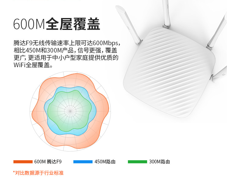 商品名称:腾达(Tenda)F9 600M 无线路由器 WiFi无线穿墙 家用智能路由 商品编号:ECS012555 品牌:腾达/Tenda 上架时间:2019-07-10 商品毛重:0克 型号: F9 600M 如果您发现商品信息不准确,欢迎纠错;如果您发现有比51文具价格更低的,欢迎举报