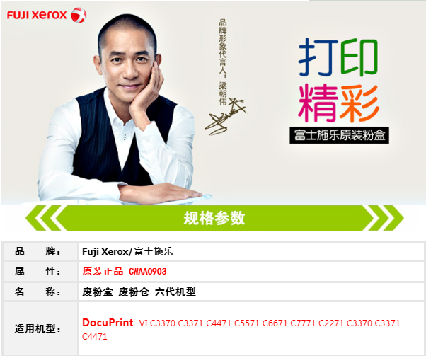 商品名称:富士施乐 原装废粉盒 CWAA0903 适用于C3371/C3370/C2271/C4471 商品编号:CWAA0903 品牌:富士施乐/FujiXerox 上架时间:2020-09-28 商品毛重:0克 型号: CWAA0903 如果您发现商品信息不准确,欢迎纠错;如果您发现有比51文具价格更低的,欢迎举报