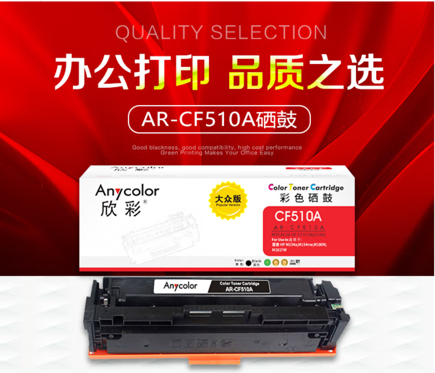 商品名称:欣彩AR-CF510A黑色硒鼓ZF 大众版 适用惠普CF510A 204A M154a M154nw MFP M180 M180n M180nw M181激光打印机 商品编号:ECS013253 品牌:欣彩/Anycolor 上架时间:2022-09-14 商品毛重:0克 型号:欣彩180 如果您发现商品信息不准确,欢迎纠错;如果您发现有比51文具价格更低的,欢迎举报