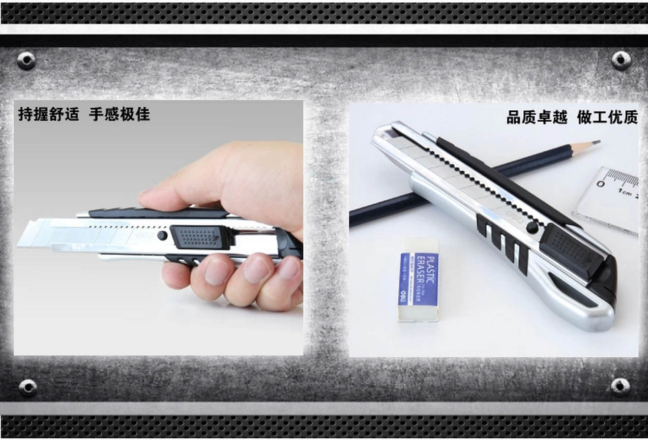 商品名称:得力2057,18mm金属美工刀(1/12/144)大号美工刀 商品编号:12.02.15.2057 品牌:文具/LZN 上架时间:2014-09-23 商品毛重:0克 规格:0.5*18*100mm 含量:1/12/144 如果您发现商品信息不准确,欢迎纠错;如果您发现有比51文具价格更低的,欢迎举报
