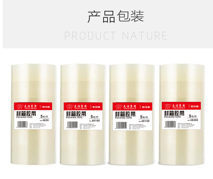 友日久4850,48*50Y封箱胶带(5卷装),透明胶带/快递打包胶带/纸封口胶布/胶带纸/4.8CM胶带
