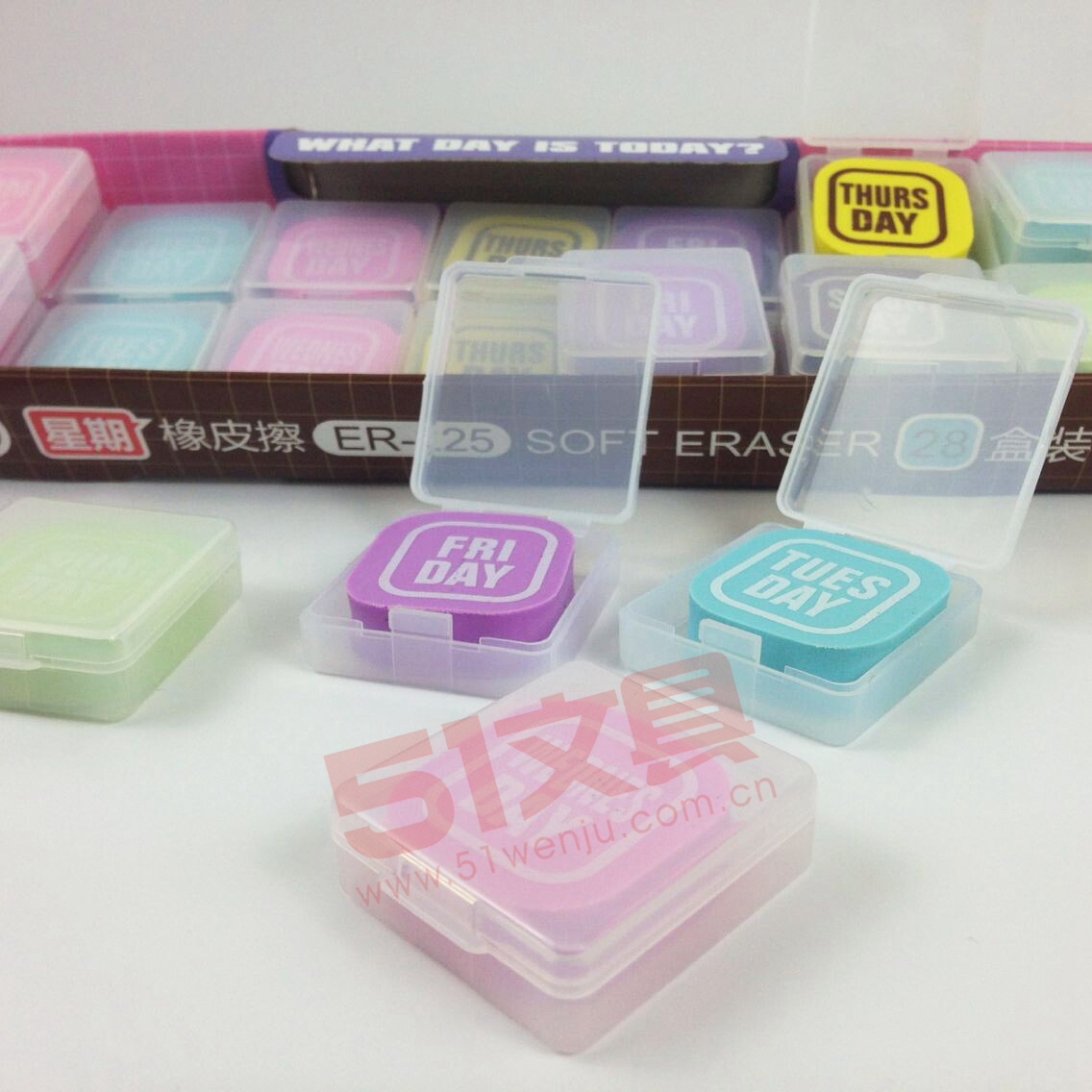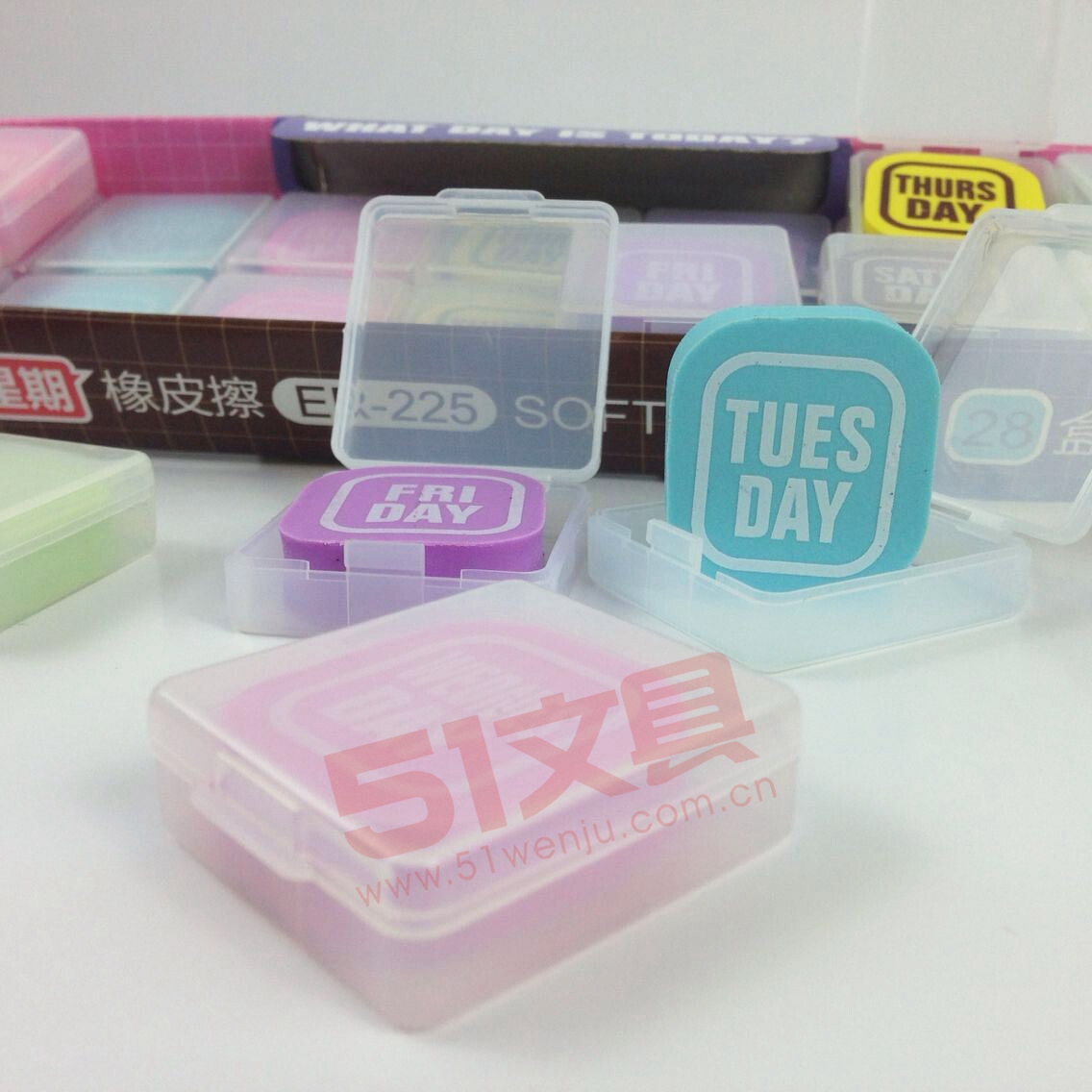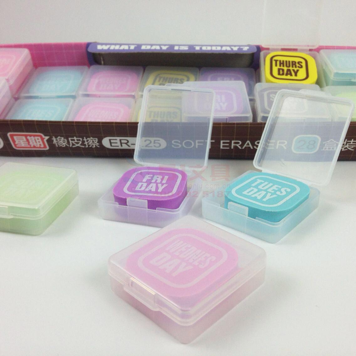 商品名称:ER-225 图强 星期橡皮擦(4组28块) 商品编号:44.01.01.0304 品牌:图强/TuQiang 上架时间:2014-12-12 商品毛重:0克 含量:1/20 起订量:盒 如果您发现商品信息不准确,欢迎纠错;如果您发现有比51文具价格更低的,欢迎举报