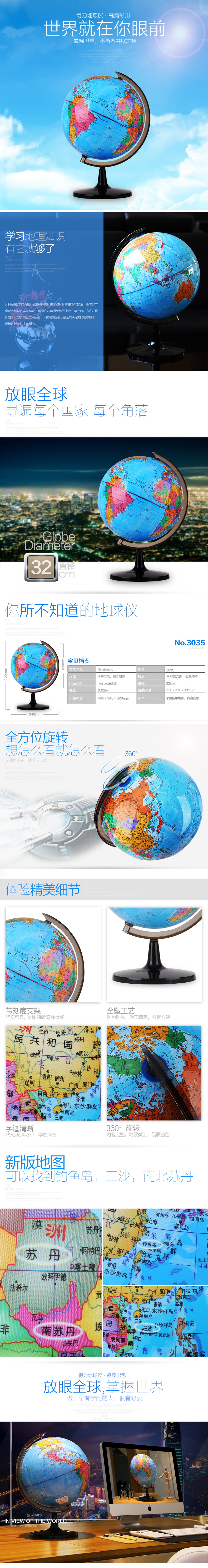商品名称:得力3035,PVC地球仪(32CM)优质办公教学地球仪Ф10.6CM旋转世界地球仪 商品编号:12.08.04.3035 品牌:得力/deli 上架时间:2014-12-15 商品毛重:0克 如果您发现商品信息不准确,欢迎纠错;如果您发现有比51文具价格更低的,欢迎举报