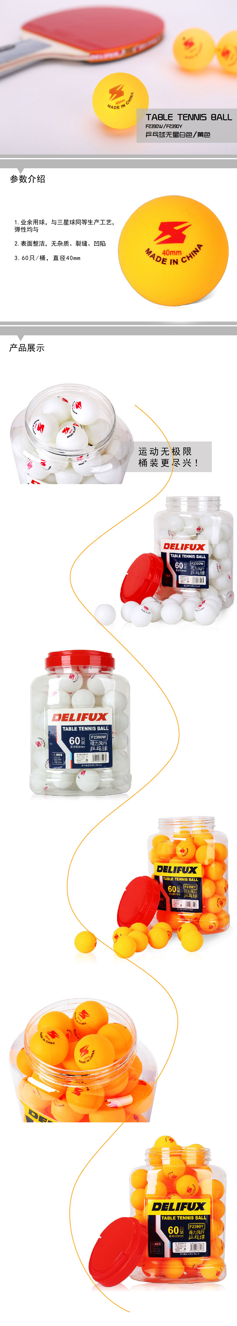 商品名称:得力F2390Y,风行 黄色乒乓球(60个/桶) 商品编号:12.21.05.2390Y 品牌:文具/LZN 上架时间:2015-06-17 商品毛重:0克 含量:1*24 如果您发现商品信息不准确,欢迎纠错;如果您发现有比51文具价格更低的,欢迎举报