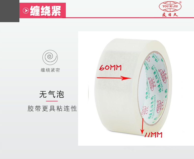 - 商品名称:友日久6050,60*50Y封箱胶带(5卷装),透明胶带/快递打包胶带/纸封口胶布/胶带纸/6.0CM胶带
