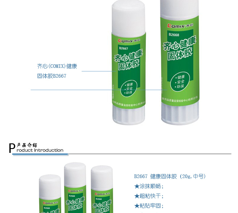 商品名称:齐心B2666,健康固体胶(8g),PVA固体胶 商品编号:13.02.04.0106 品牌:齐心/COMIX 上架时间:2014-07-14 商品毛重:0克 规格:9g 含量:1/24/384 起订量:盒 如果您发现商品信息不准确,欢迎纠错;如果您发现有比51文具价格更低的,欢迎举报