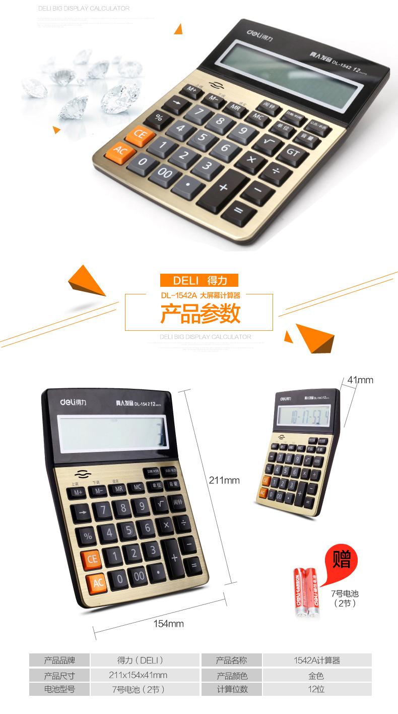 商品名称:得力1542A,语音计算器-香槟金 商品编号:12.04.31.0342 品牌:文具/LZN 上架时间:2015-12-22 商品毛重:0克 规格:211x154x41mm 含量:1/10/40 如果您发现商品信息不准确,欢迎纠错;如果您发现有比51文具价格更低的,欢迎举报