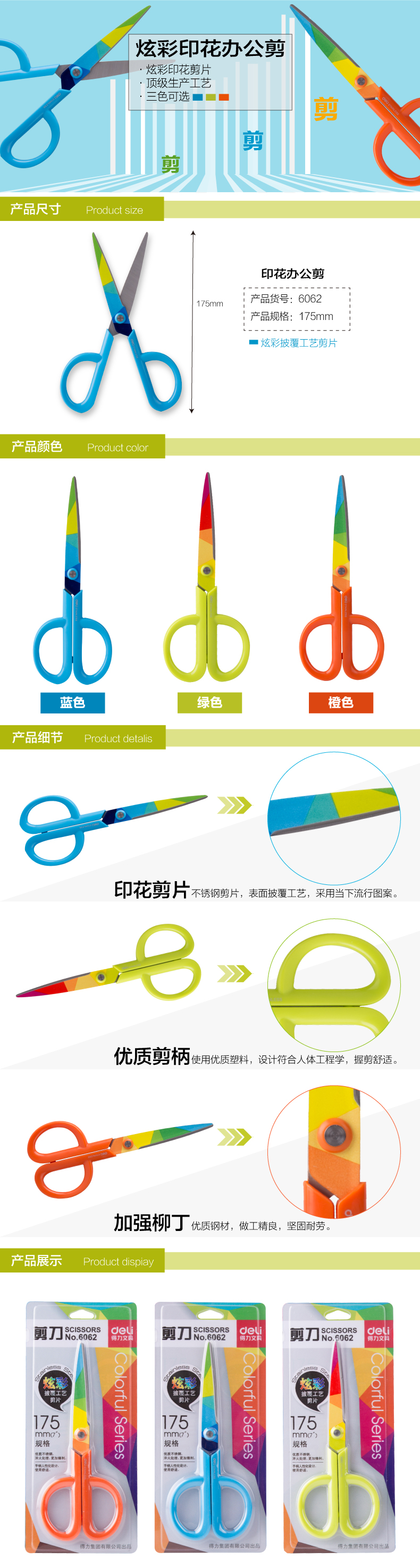商品名称:得力6062,印花办公剪刀 商品编号:12.02.16.0125 品牌:文具/LZN 上架时间:2016-01-12 商品毛重:0克 如果您发现商品信息不准确,欢迎纠错;如果您发现有比51文具价格更低的,欢迎举报