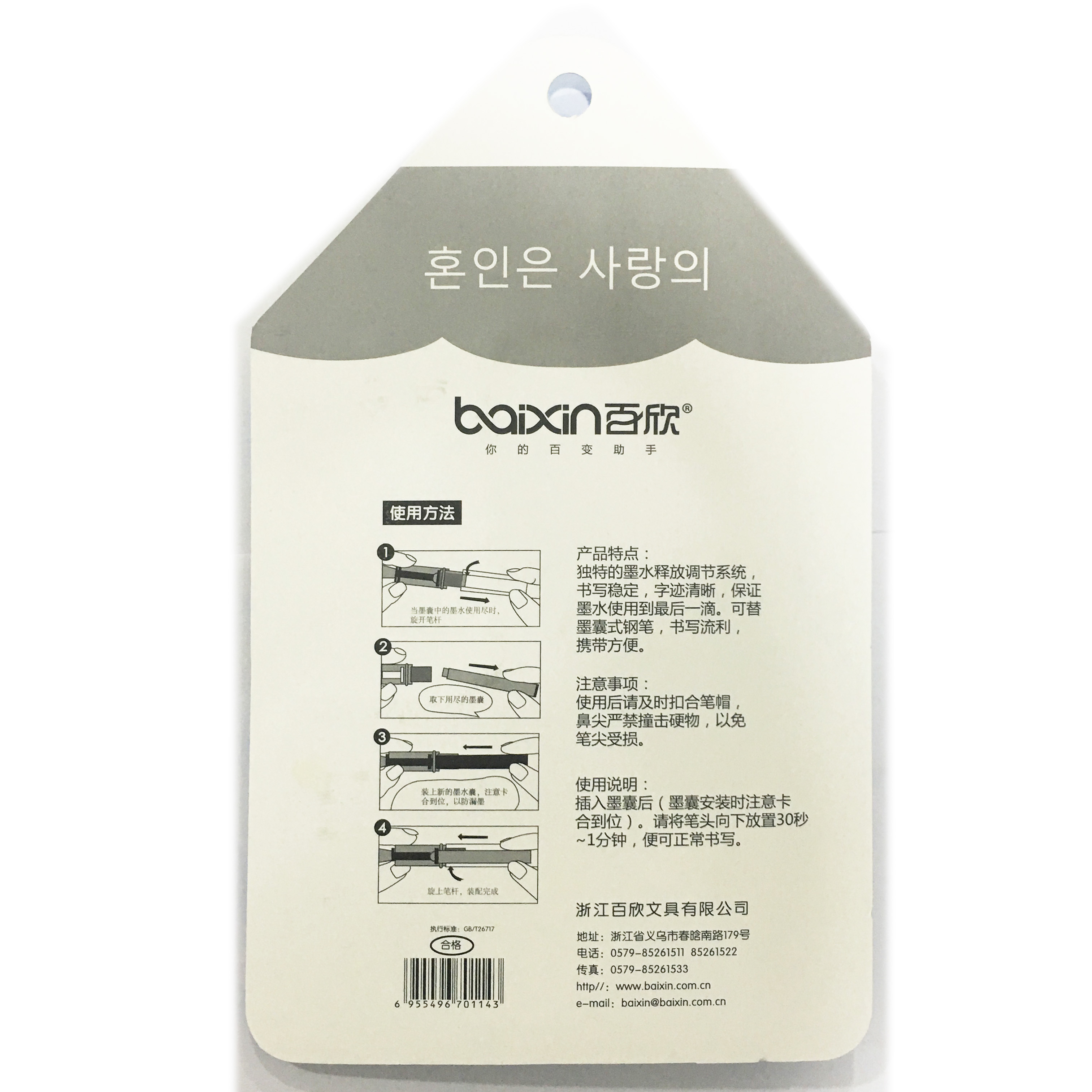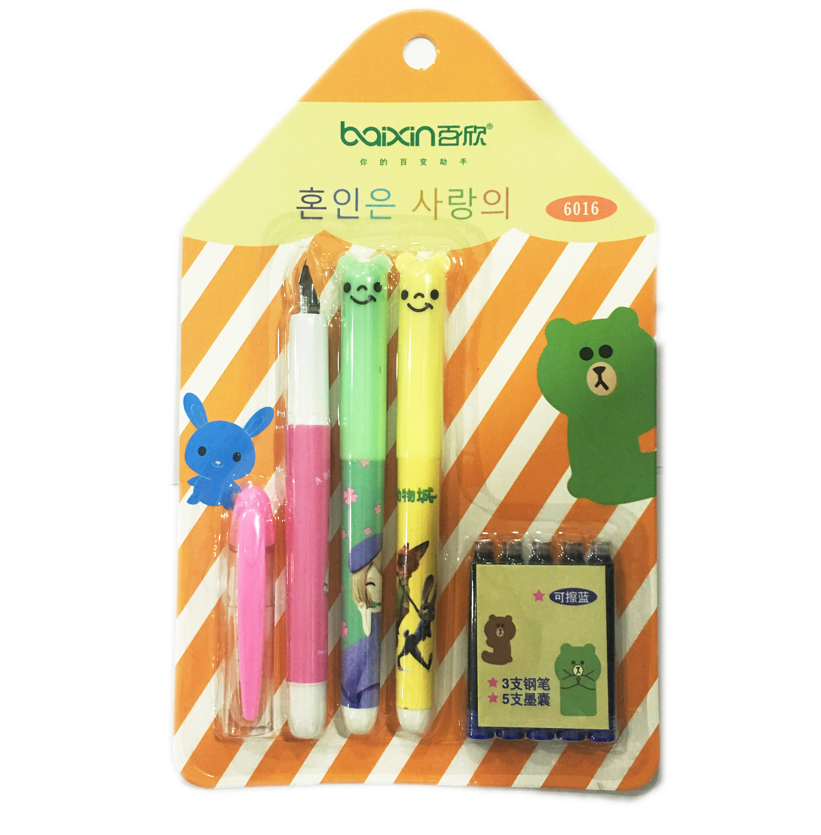 商品名称:6016 百欣 3支墨囊笔套装-3支笔+5墨囊 商品编号:09.01.01.6016 品牌:百欣 上架时间:2016-08-16 商品毛重:0克 如果您发现商品信息不准确,欢迎纠错;如果您发现有比51文具价格更低的,欢迎举报