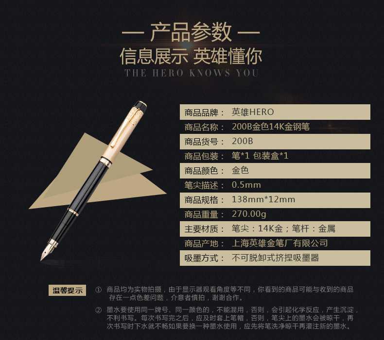 商品名称:200B 英雄 高级钢笔 商品编号:91.04.03.0200 品牌:英雄/HERO 上架时间:2016-08-20 商品毛重:0克 如果您发现商品信息不准确,欢迎纠错;如果您发现有比51文具价格更低的,欢迎举报