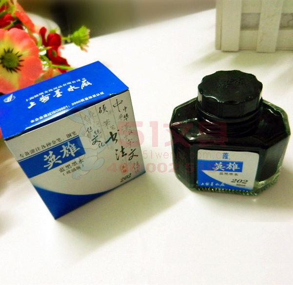 商品名称:英雄202#,蓝黑墨水,墨蓝墨水-爆款 商品编号:91.04.03.0202 品牌:英雄/HERO 上架时间:2016-09-30 商品毛重:0克 价格单位:盒 如果您发现商品信息不准确,欢迎纠错;如果您发现有比51文具价格更低的,欢迎举报