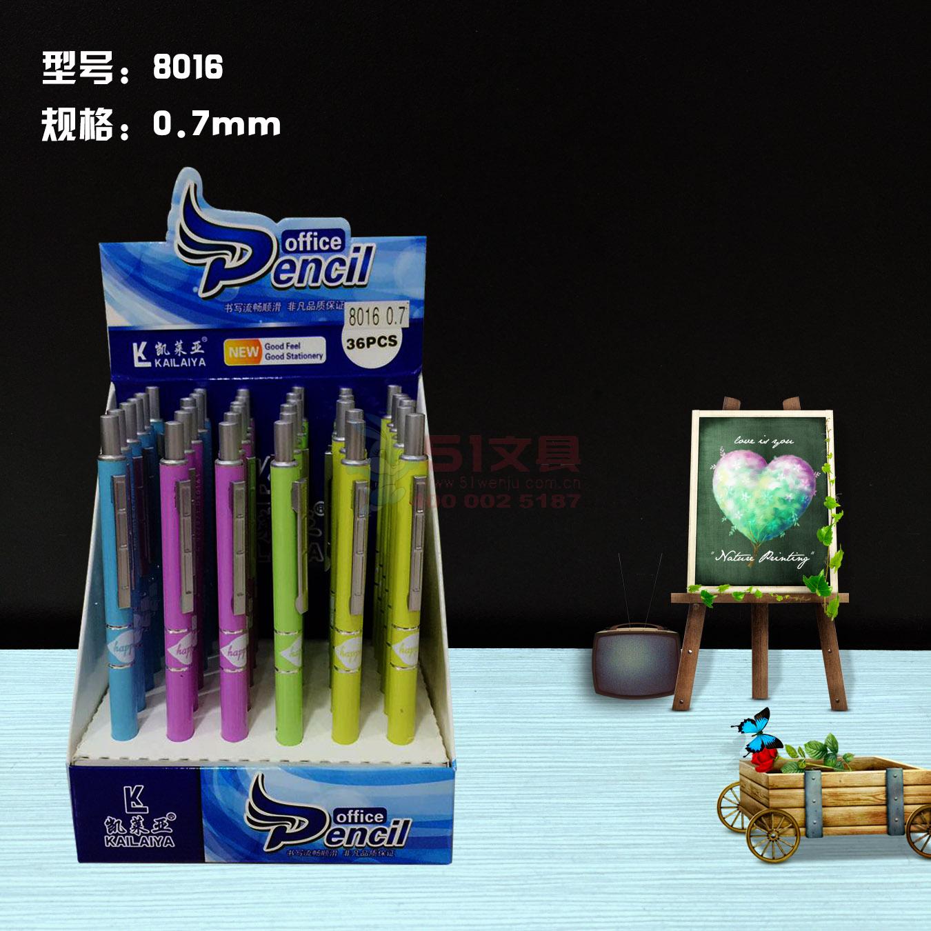 商品名称:凯莱亚8016,自动铅笔 商品编号:21.01.01.8016 品牌:凯莱迪 上架时间:2016-11-21 商品毛重:0克 笔杆材质:金属杆 铅芯规格:0.7mm 包装方式:1/36/1296 如果您发现商品信息不准确,欢迎纠错;如果您发现有比51文具价格更低的,欢迎举报
