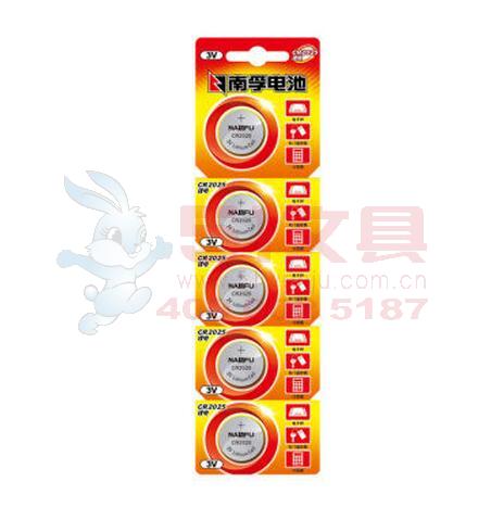商品名称:南孚 CR2025纽扣电池3V锂电池5粒挂卡装 商品编号:56.01.0301 品牌:南孚/Nanfu 上架时间:2016-12-22 商品毛重:0克 价格单位:粒 如果您发现商品信息不准确,欢迎纠错;如果您发现有比51文具价格更低的,欢迎举报
