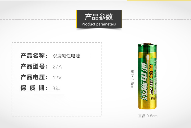 商品名称:27A 双鹿 27A高伏碱性电池-1粒卡装 商品编号:56.02.0027 品牌:双鹿/SONLU 上架时间:2016-12-22 商品毛重:0克 如果您发现商品信息不准确,欢迎纠错;如果您发现有比51文具价格更低的,欢迎举报