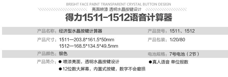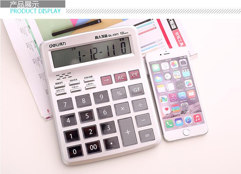 商品名称:得力1511,12位大屏语音计算器(1/10/40)大按键计算机 商品编号:12.04.31.1511 品牌:文具/LZN 上架时间:2017-03-09 商品毛重:0克 如果您发现商品信息不准确,欢迎纠错;如果您发现有比51文具价格更低的,欢迎举报