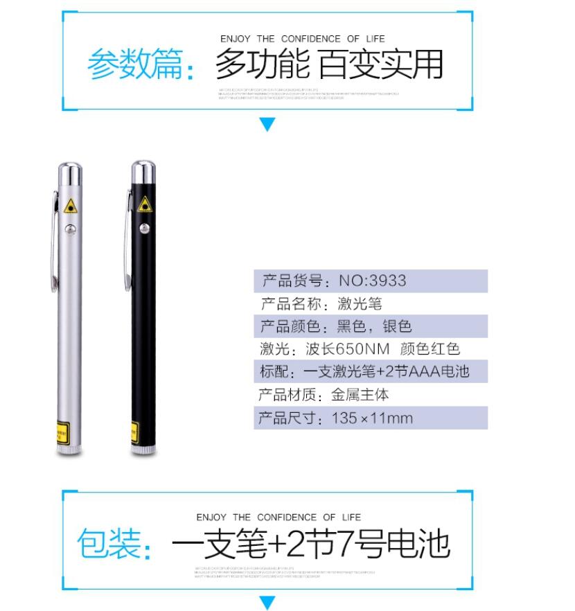 商品名称:得力3933,红外线教鞭笔手电亮光笔 红光激光灯教学笔 颜色随机 商品编号:12.07.71.3733 品牌:得力/deli 上架时间:2017-05-16 商品毛重:0克 如果您发现商品信息不准确,欢迎纠错;如果您发现有比51文具价格更低的,欢迎举报