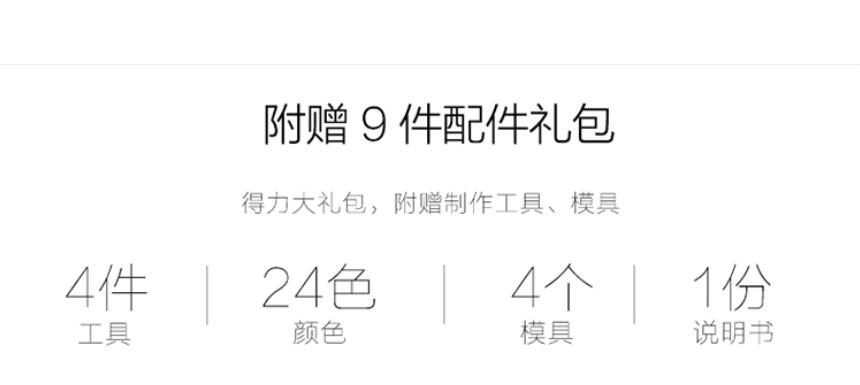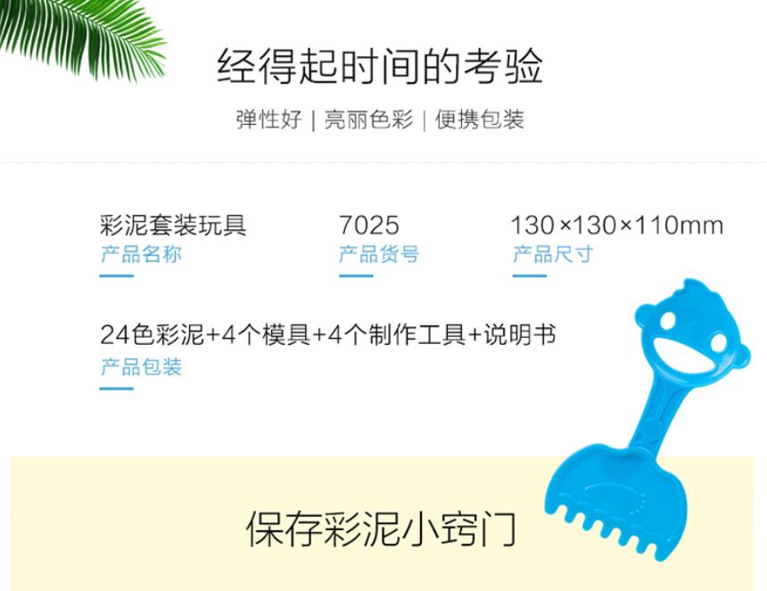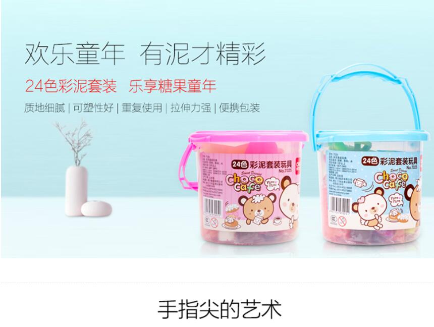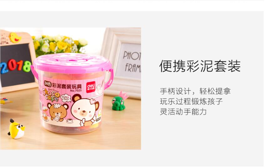 商品名称:得力7025,24色彩泥(1/18/36) 商品编号:11.21.01.0125 品牌:得力/deli 上架时间:2017-06-14 商品毛重:0克 颜色数:24色 包装含量:1/18/36 如果您发现商品信息不准确,欢迎纠错;如果您发现有比51文具价格更低的,欢迎举报