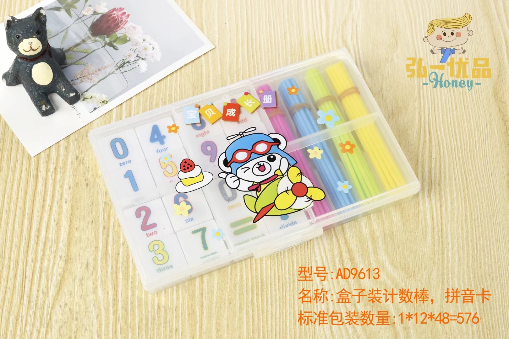 商品名称:弘一优品9613,盒子装计数棒/拼音卡,AD9613 商品编号:39.01.05.9613 品牌:弘一优品 上架时间:2017-07-19 商品毛重:0克 如果您发现商品信息不准确,欢迎纠错;如果您发现有比51文具价格更低的,欢迎举报 产品名称: 计数棒(盒装)AD9613 材质: 全新ABS 规格: 10.5*7.5*2.5CM 包装规格: 1*48*12=576 外箱尺寸: 44*42*25 产品简介:内装100根实心加粗计数棒,拼音卡和教学用假币一套。