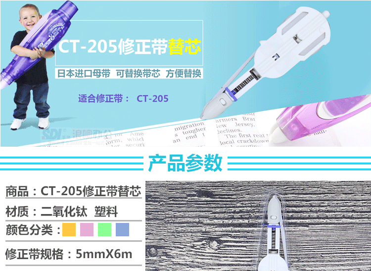 商品名称:台湾SDI手牌 CT-205R 修正带替芯 适用于 CT-205 简易替换 商品编号:59.01.07.0205R 品牌:手牌/SDI 上架时间:2017-08-04 商品毛重:0克 如果您发现商品信息不准确,欢迎纠错;如果您发现有比51文具价格更低的,欢迎举报