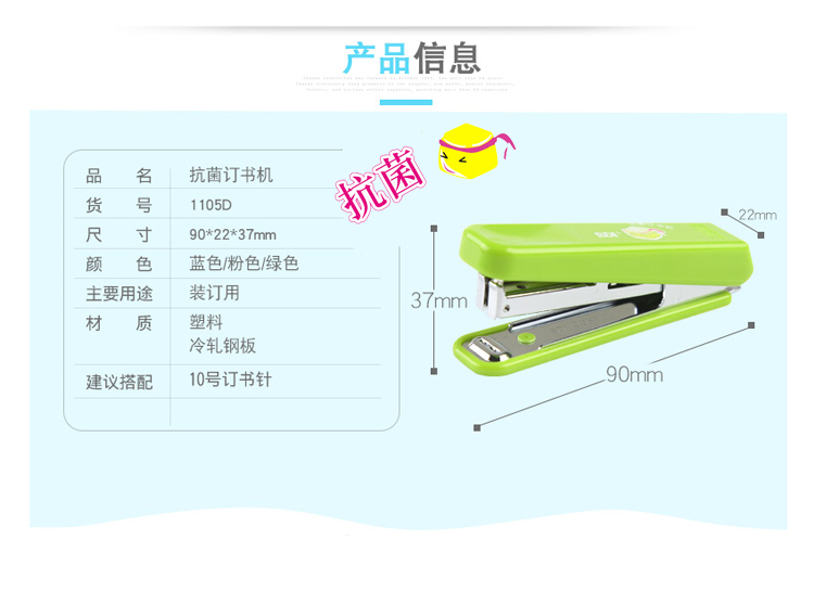 商品名称:台湾SDI手牌订书机 抗菌10号针省力钉书机 1105D装订器 商品编号:59.01.08.1105 品牌:手牌/SDI 上架时间:2017-08-04 商品毛重:0克 如果您发现商品信息不准确,欢迎纠错;如果您发现有比51文具价格更低的,欢迎举报