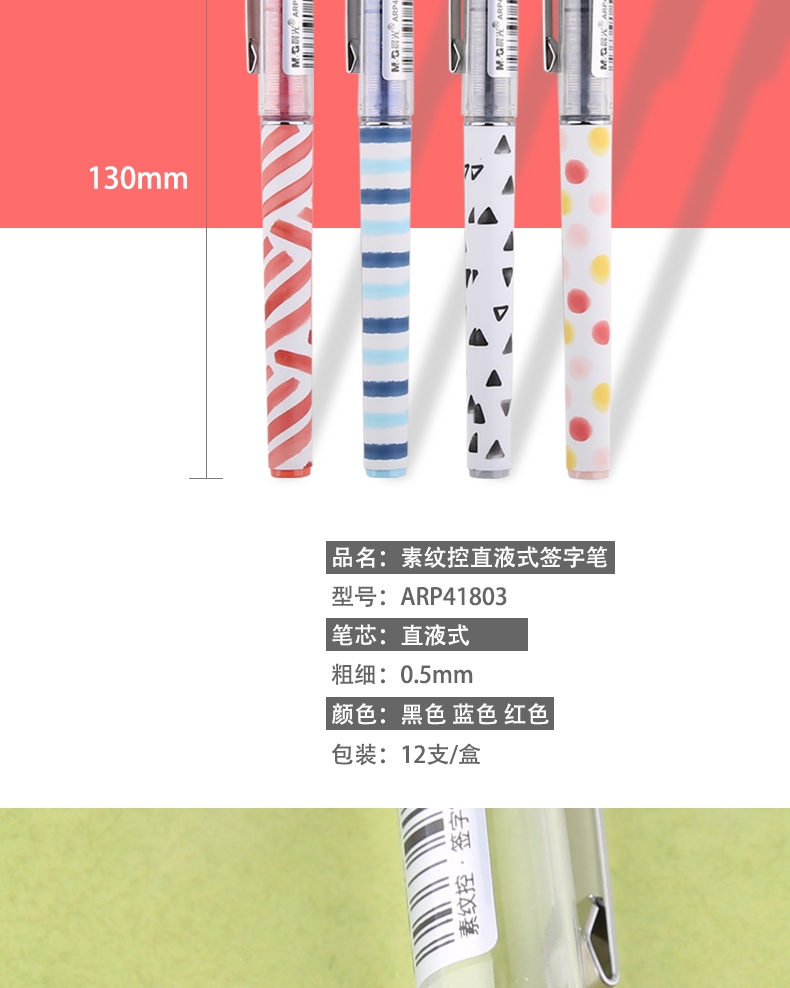 商品名称:晨光 ARP41803,素纹控控直液式走珠水笔全针管中性笔/大容量签字笔 商品编号:61.03.01.41803 品牌:晨光/M&G 上架时间:2017-08-06 商品毛重:0克 价格单位:支 笔头粗细:0.5mm 包装含量:12/144/1728 如果您发现商品信息不准确,欢迎纠错;如果您发现有比51文具价格更低的,欢迎举报
