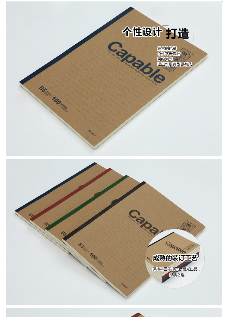 商品名称:晨光笔记本,B5100张200页牛卡无线装订本,A5200型办公笔记本/牛皮软抄本(APYJY550) 商品编号:61.04.01.0550Y 品牌:晨光/M&G 上架时间:2017-08-06 商品毛重:0克 产品类型:无线装订本 规格:B5 页数:100页 含量:1/8/72 如果您发现商品信息不准确,欢迎纠错;如果您发现有比51文具价格更低的,欢迎举报