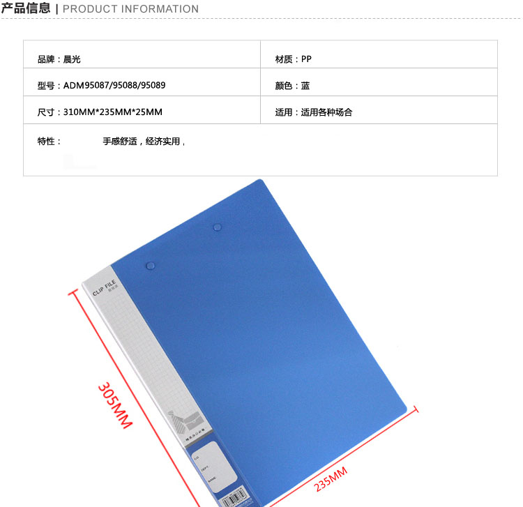 商品名称:晨光ADM95088 ,A4新锐双强力夹文件夹 商品编号:61.01.03.95088 品牌:晨光/M&G 上架时间:2017-08-07 商品毛重:0克 规格:A4 类型:双强力夹 含量:1/12/120 起订量:中包(12pcs) 如果您发现商品信息不准确,欢迎纠错;如果您发现有比51文具价格更低的,欢迎举报