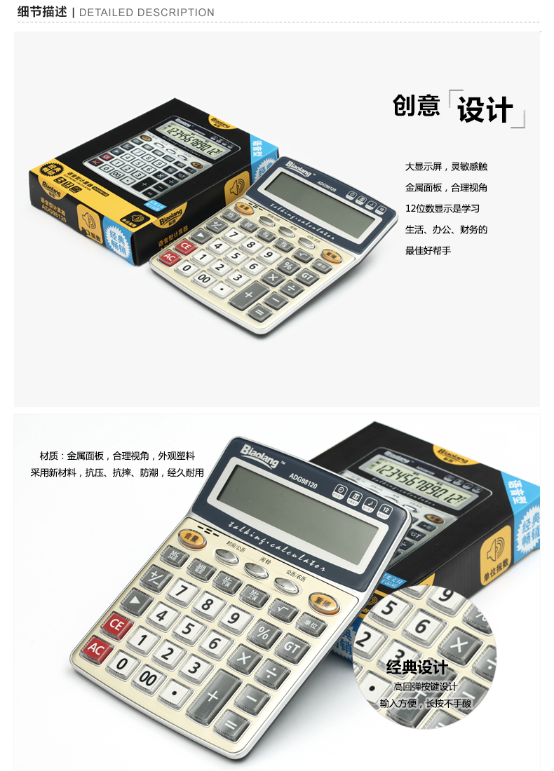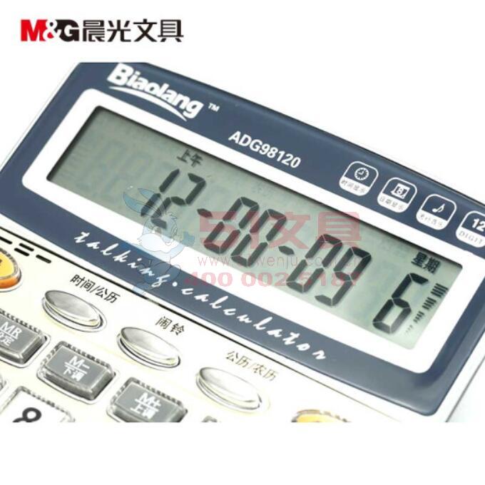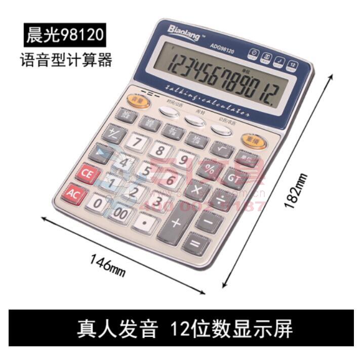 商品名称:晨光ADG98120,语音计算,标朗12位桌面语音型财务计算器,双电源计算机/学生多功能函数计算器 商品编号:61.02.02.98120 品牌:晨光/M&G 上架时间:2017-08-07 商品毛重:0克 如果您发现商品信息不准确,欢迎纠错;如果您发现有比51文具价格更低的,欢迎举报