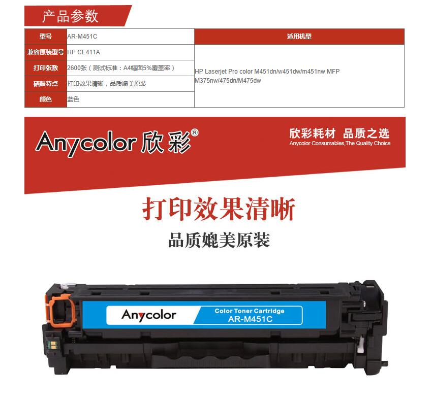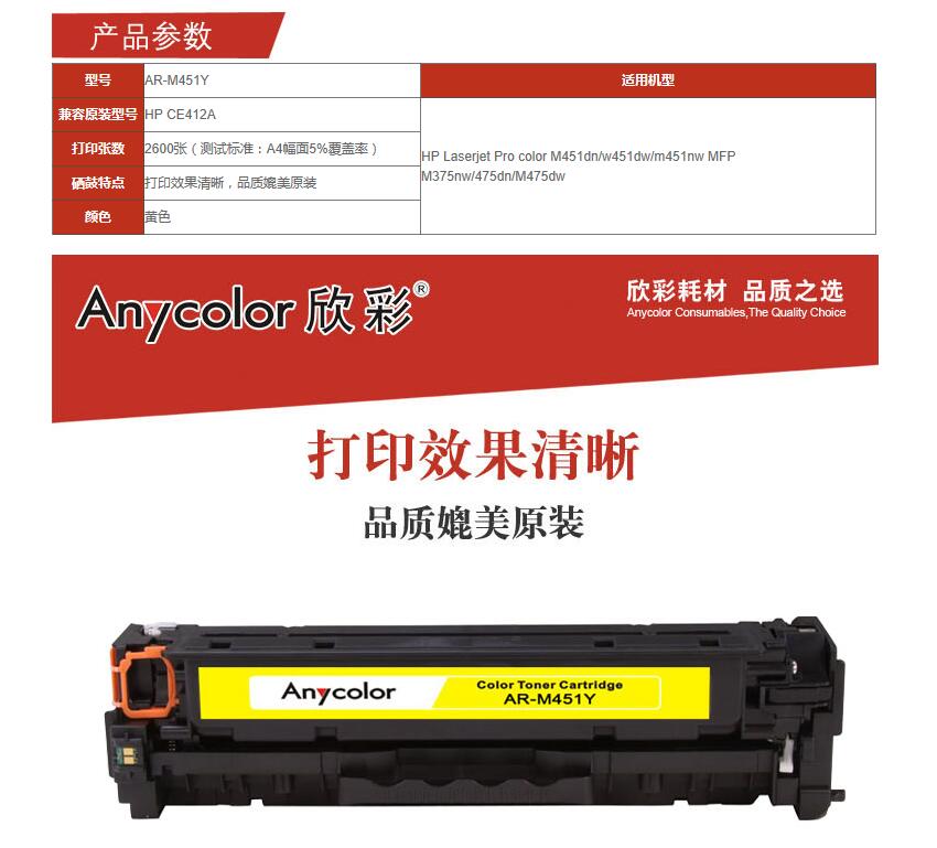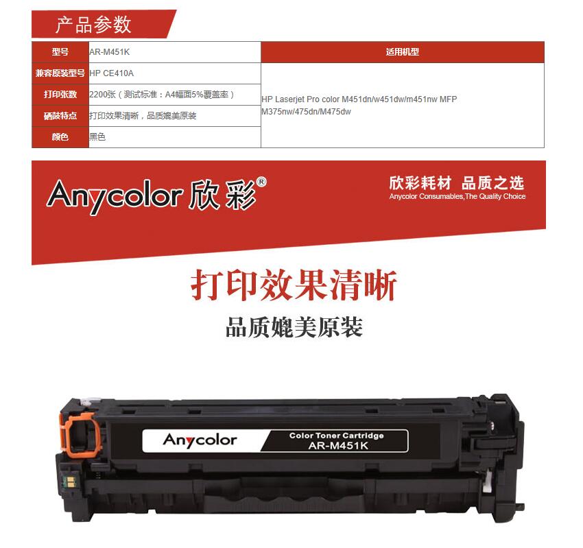 商品名称:欣彩AR-M451M/M451K/M451C/M451Y,硒鼓适用惠普CE413A(305A),HP M451dn/w451dw 红色/黑色/蓝色/黄色 商品编号:ECS007812 品牌:欣彩/Anycolor 上架时间:2017-08-26 商品毛重:0克 如果您发现商品信息不准确,欢迎纠错;如果您发现有比51文具价格更低的,欢迎举报