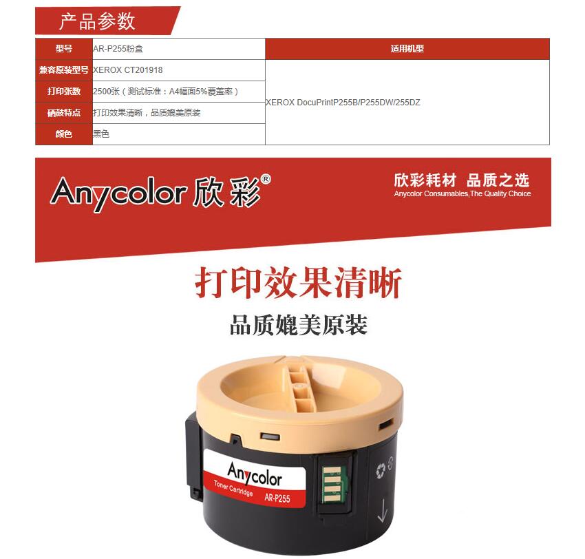 商品名称:欣彩AR-P255,黑色粉盒适用施乐CT201918 ,Xerox P255B/P255DW 黑色 商品编号:ECS007838 品牌:欣彩/Anycolor 上架时间:2017-08-27 商品毛重:0克 如果您发现商品信息不准确,欢迎纠错;如果您发现有比51文具价格更低的,欢迎举报