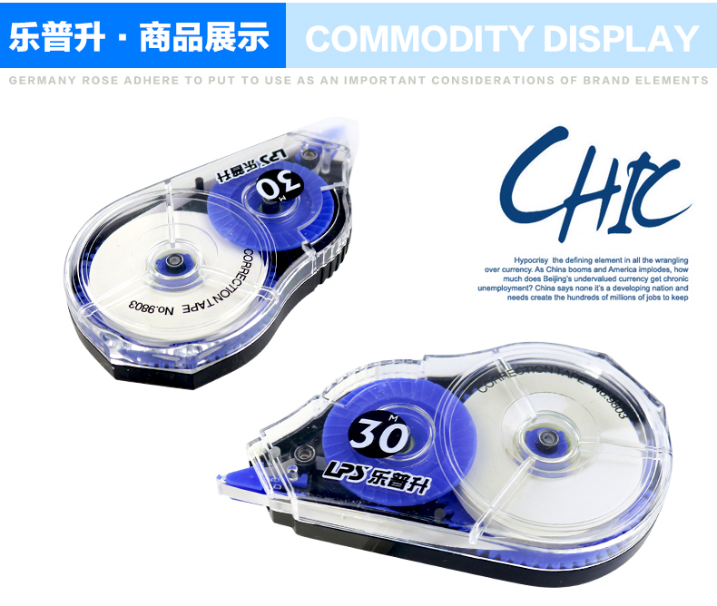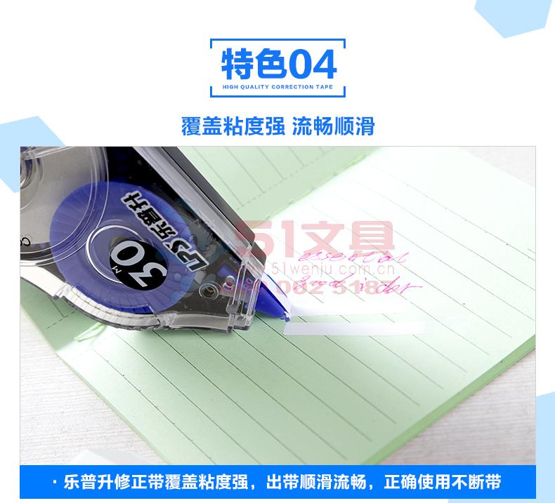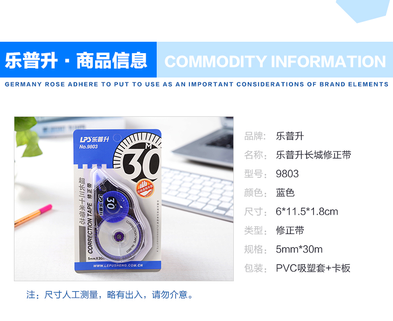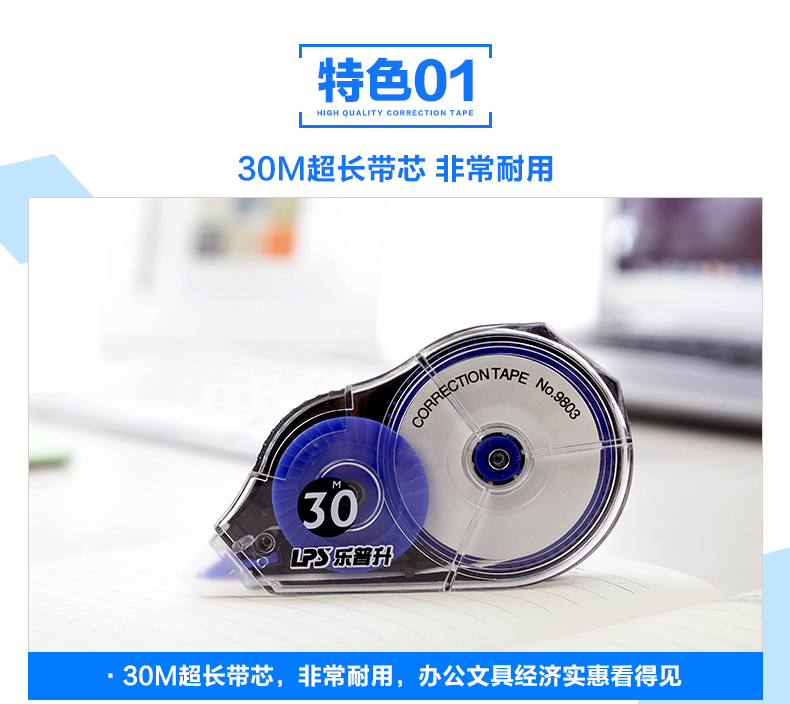 商品名称:乐普升9803,5mm*30m大容量修正带改正带涂改带纠错带纸(长城),T-9083 商品编号:68.01.01.9803 品牌:乐普升/LPS 上架时间:2017-11-15 商品毛重:0克 规格:5mm*30m 含量:1/24/576 如果您发现商品信息不准确,欢迎纠错;如果您发现有比51文具价格更低的,欢迎举报