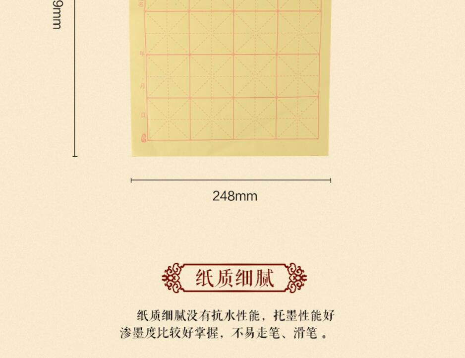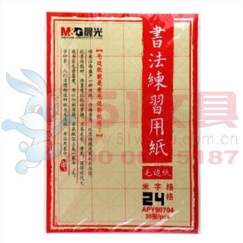 商品名称:晨光APY90704,毛边纸(米字格24格)文房四宝书法练习用纸毛边纸米字格24格30张 商品编号:61.04.11.90704 品牌:晨光/M&G 上架时间:2017-11-26 商品毛重:0克 包装量:1/50/200 规格:8K 价格单位:包(30张) 如果您发现商品信息不准确,欢迎纠错;如果您发现有比51文具价格更低的,欢迎举报