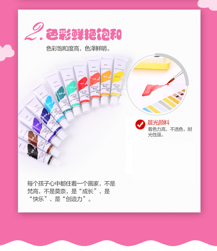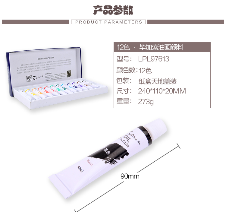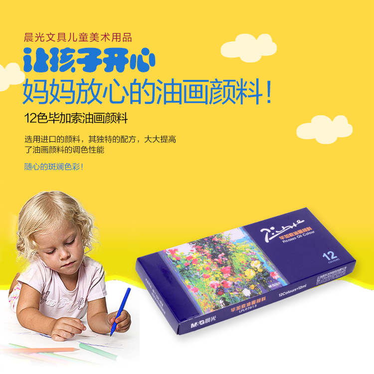 商品名称:晨光LPL97613,12色油画颜料 商品编号:61.06.11.97613 品牌:晨光/M&G 上架时间:2017-12-11 商品毛重:0克 颜色数:12色 包装含量:1/12/72 价格单位:盒 如果您发现商品信息不准确,欢迎纠错;如果您发现有比51文具价格更低的,欢迎举报