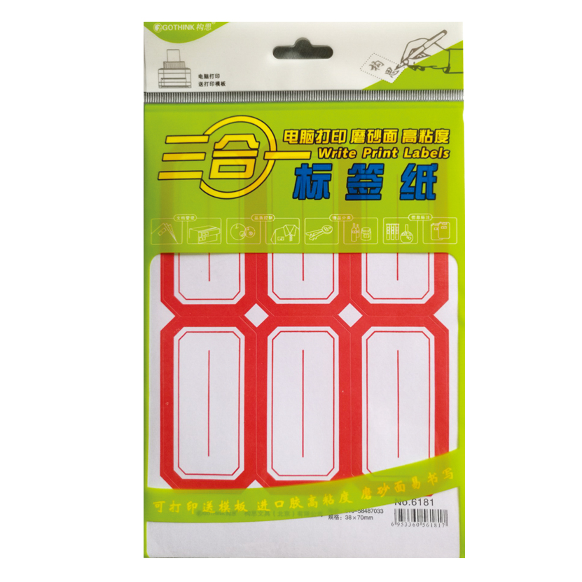 商品名称:构思,38*70红/蓝不干胶自粘性标签纸/手写价格姓名贴纸分类空白标记贴口取纸(6181/6182) 商品编号:27.01.03.6181 品牌:构思 上架时间:2018-03-08 商品毛重:0克 如果您发现商品信息不准确,欢迎纠错;如果您发现有比51文具价格更低的,欢迎举报