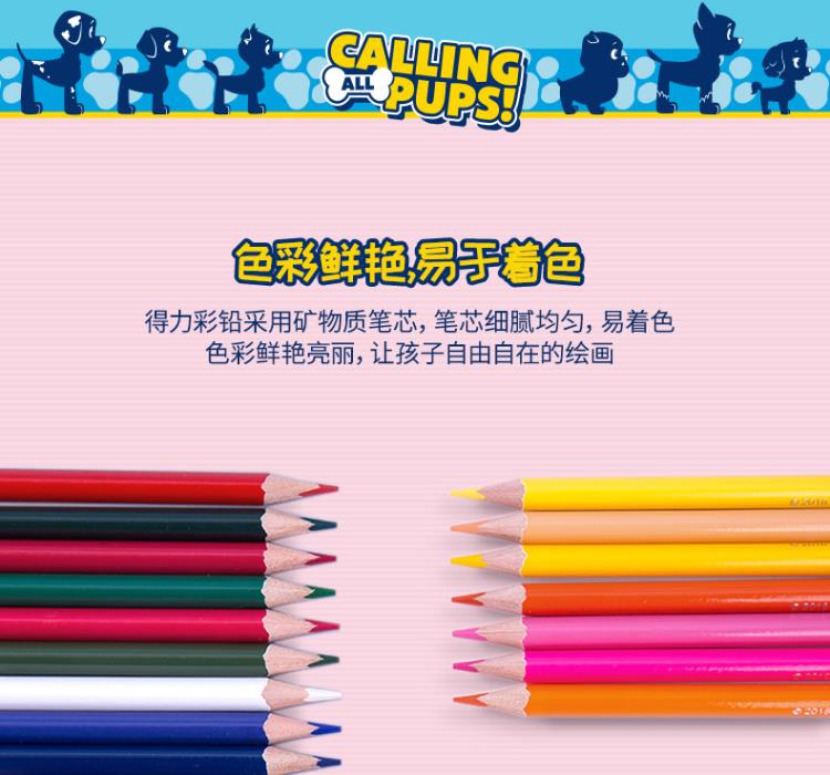 商品名称:得力68106,汪汪队立大功学生文具桶装36色彩铅中小学生书写彩色铅笔 商品编号:11.05.03.68106 品牌:得力/deli 上架时间:2018-03-31 商品毛重:0克 颜色数:36色 包装含量:1/12/72 价格单位:筒 如果您发现商品信息不准确,欢迎纠错;如果您发现有比51文具价格更低的,欢迎举报