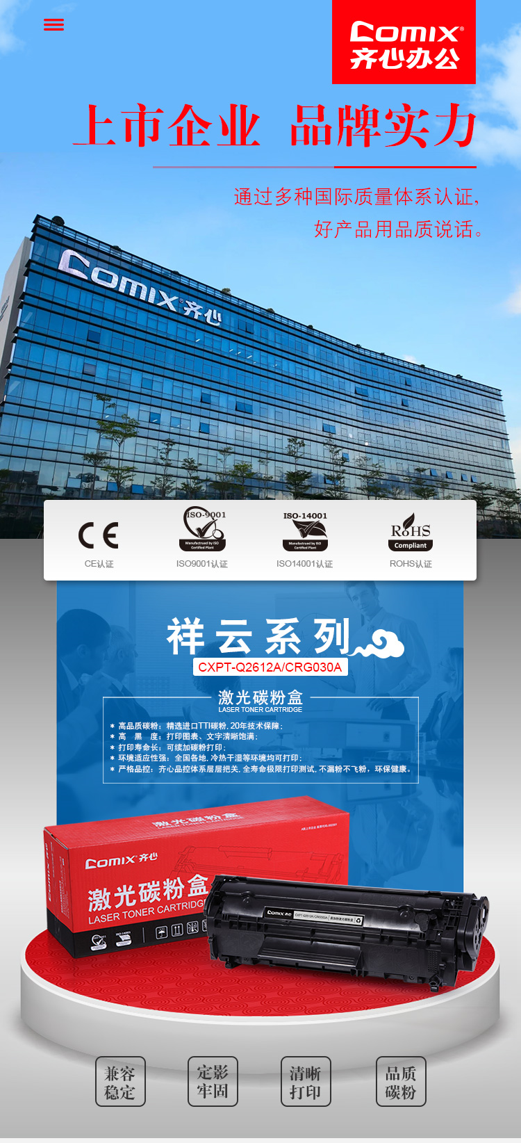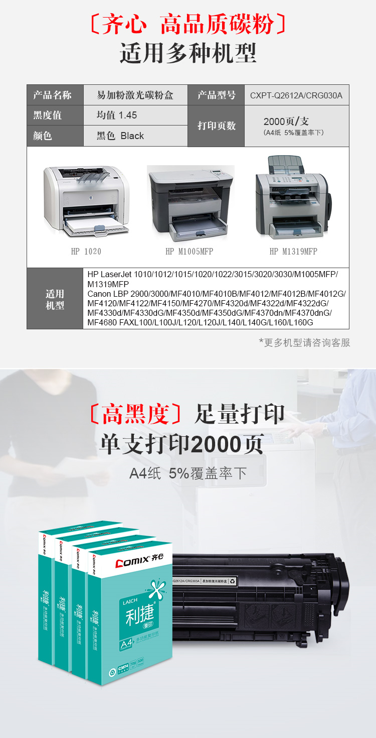 商品名称:齐心2612AT,易加粉黑色硒鼓 *爆款一口价 CX-Q2612AT (适用惠普 1010/1012/1015/1020/3050/M1005/M1319f) 商品编号:13.07.09.2612 品牌:齐心/COMIX 上架时间:2018-04-12 商品毛重:0克 如果您发现商品信息不准确,欢迎纠错;如果您发现有比51文具价格更低的,欢迎举报