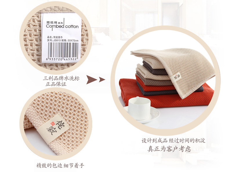 商品名称:三利JS813,72*33cm精梳棉蜂巢侘寂洗脸面巾柔软日式男女大人双面纱布耐脏薄毛巾/柔软吸水面巾74g左右/条 商品编号:90.01.02.0813 品牌:三利/SANLI 上架时间:2018-04-14 商品毛重:0克 如果您发现商品信息不准确,欢迎纠错;如果您发现有比51文具价格更低的,欢迎举报