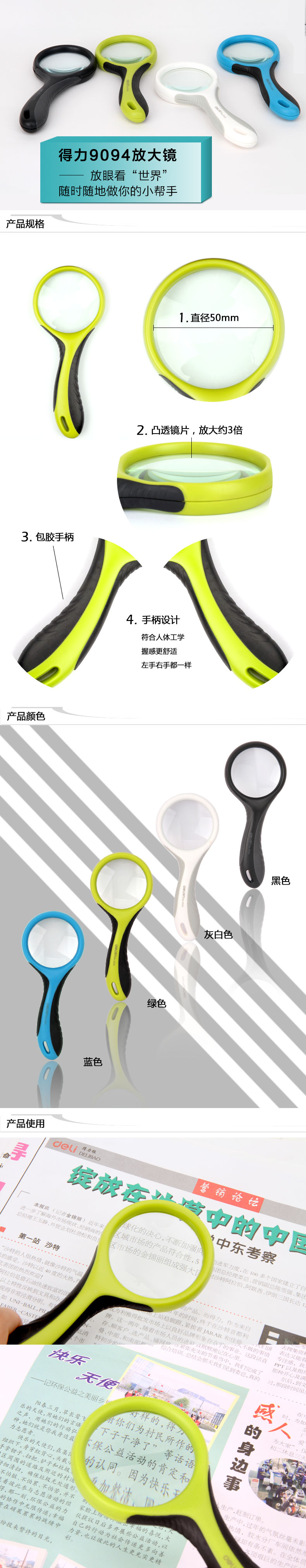 商品名称:得力9094,3.0倍放大镜,放大3倍镜片直径50mm 商品编号:12.08.80.9094 品牌:文具/LZN 上架时间:2018-04-19 商品毛重:0克 如果您发现商品信息不准确,欢迎纠错;如果您发现有比51文具价格更低的,欢迎举报