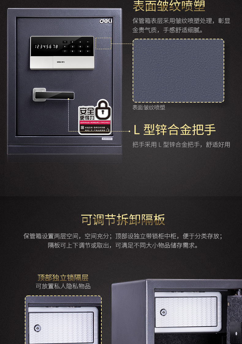 商品名称:得力3653,48电子密码保险柜 50家用办公保险箱 小型入墙防盗保管箱 50保管箱 商品编号:12.08.31.3653 品牌:文具/LZN 上架时间:2018-05-09 商品毛重:0克 如果您发现商品信息不准确,欢迎纠错;如果您发现有比51文具价格更低的,欢迎举报