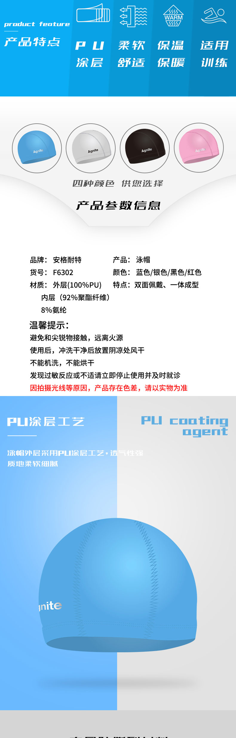 商品名称:安格耐特F6302,PU涂层高弹舒适泳帽(1/6/96)防水专业游泳帽 商品编号:72.02.02.6302 品牌:安格耐特/Agnite 上架时间:2018-05-31 商品毛重:0克 如果您发现商品信息不准确,欢迎纠错;如果您发现有比51文具价格更低的,欢迎举报