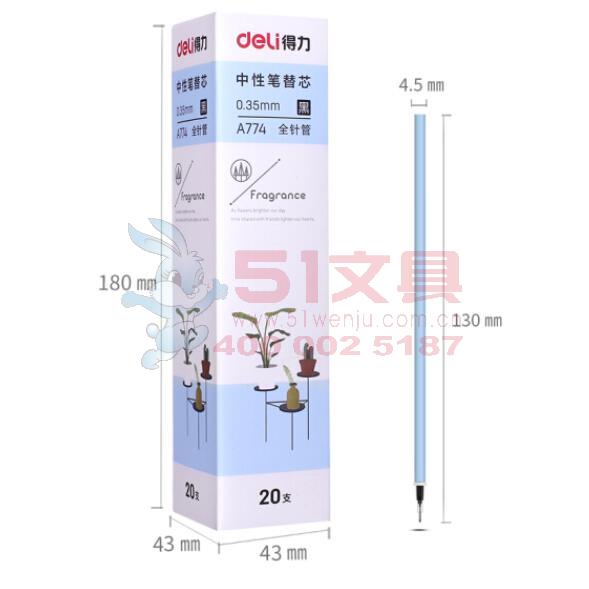 商品名称:得力A774,0.35mm中性笔/签字笔学生全针管碳素水笔笔芯/黑色替芯(20支) 商品编号:11.03.09.0774 品牌:得力/deli 上架时间:2018-06-12 商品毛重:0克 价格单位:支 笔头类型:全针管 笔头粗细:0.35mm 包装含量:20/244/2880 如果您发现商品信息不准确,欢迎纠错;如果您发现有比51文具价格更低的,欢迎举报