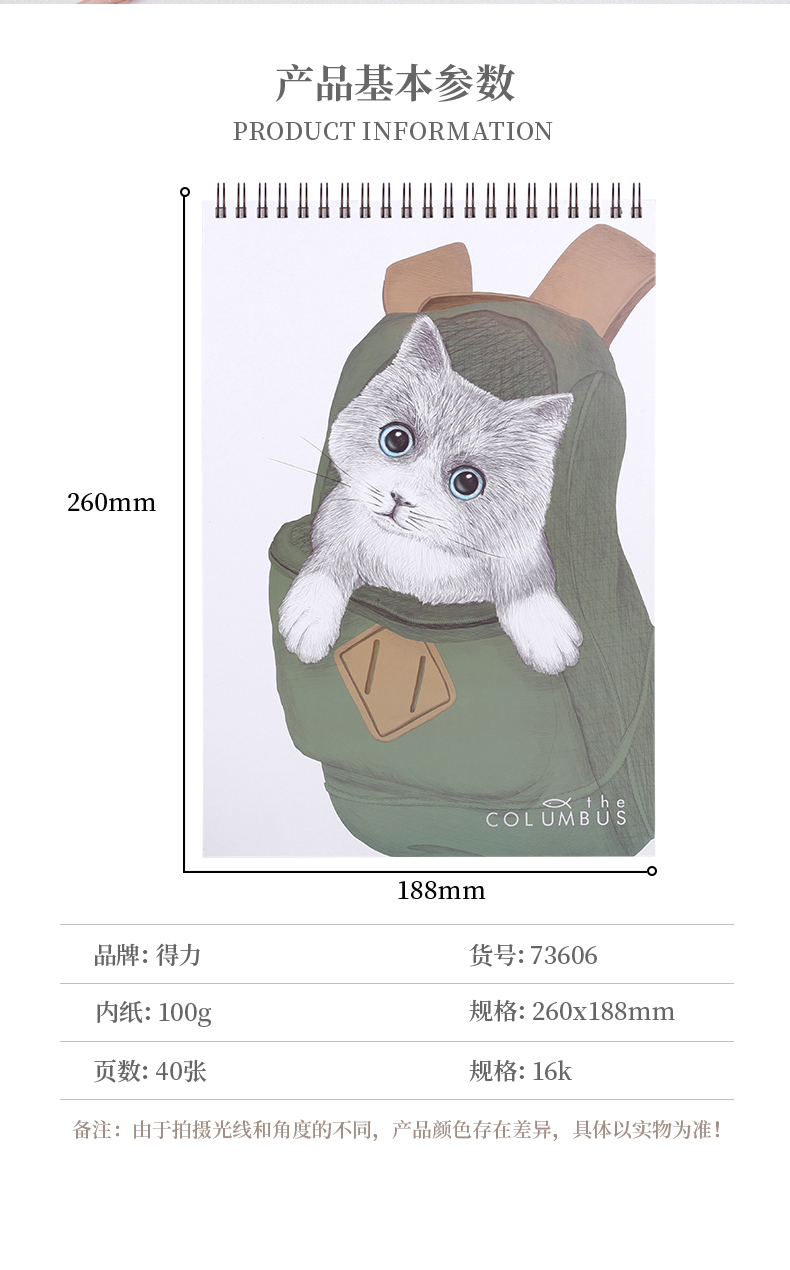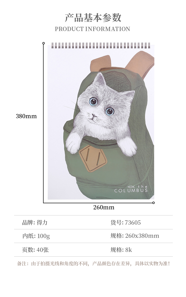 商品名称:得力73603/73605,8K素描本速写本马克本学生手绘速写写生本美术用品 商品编号:11.01.05.73605 品牌:得力/deli 上架时间:2018-06-20 商品毛重:0克 规格:8K 含量:1/10/60 如果您发现商品信息不准确,欢迎纠错;如果您发现有比51文具价格更低的,欢迎举报