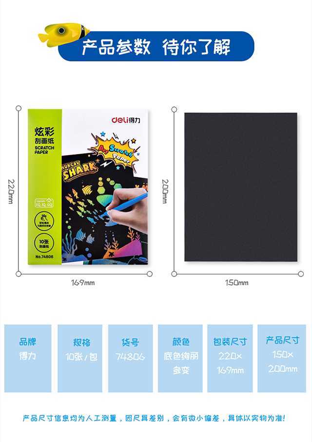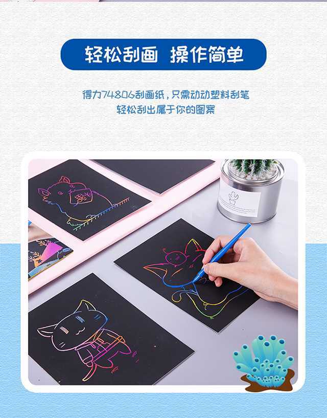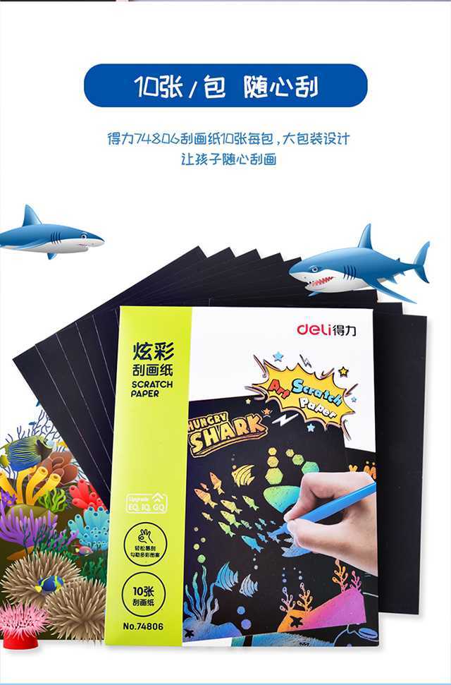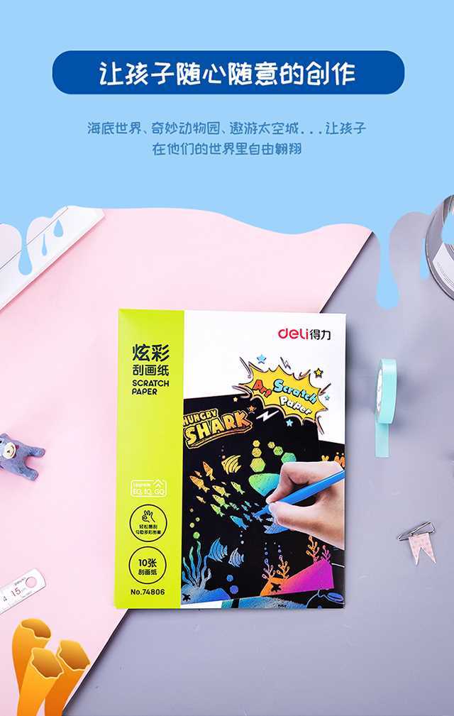商品名称:得力74806 ,炫彩学生刮画纸/手工绘画/创意DIY玩具(10张}15*20cm 商品编号:11.01.05.74806 品牌:得力/deli 上架时间:2018-06-21 商品毛重:0克 如果您发现商品信息不准确,欢迎纠错;如果您发现有比51文具价格更低的,欢迎举报