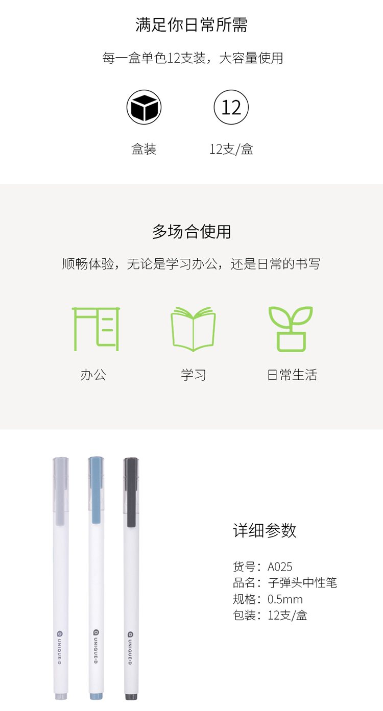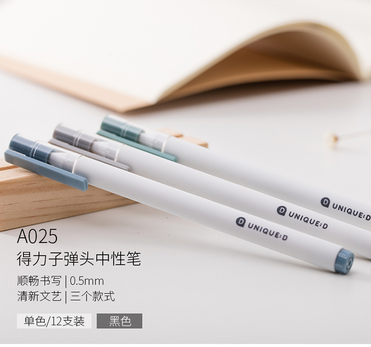 商品名称:得力A025,素印象0.5mm学生黑色中性笔,0.5子弹头水笔签字笔 商品编号:11.03.01.0025A 品牌:得力/deli 上架时间:2018-06-23 商品毛重:0克 如果您发现商品信息不准确,欢迎纠错;如果您发现有比51文具价格更低的,欢迎举报