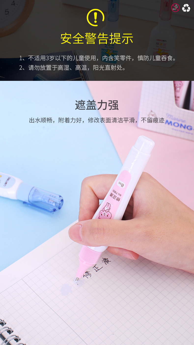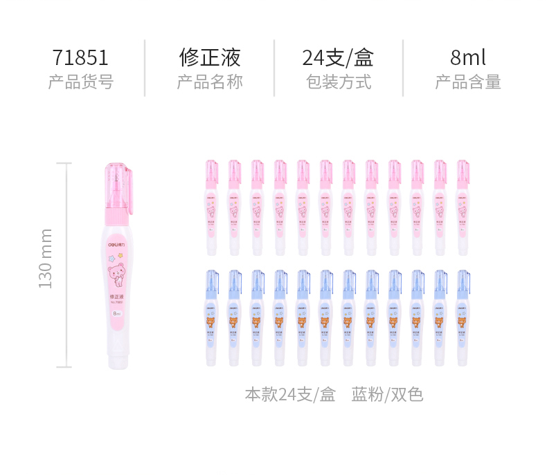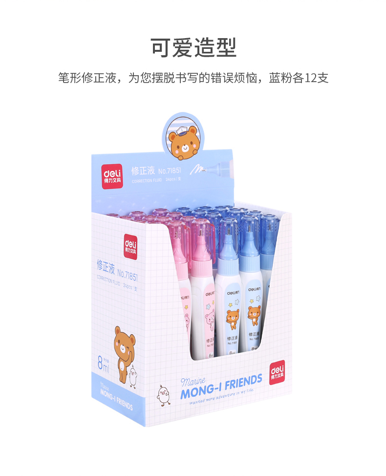 商品名称:得力71851,修正液涂改液快干修正液白色卡通图案可爱学生文具 商品编号:11.13.02.71851 品牌:得力/deli 上架时间:2018-07-09 商品毛重:0克 如果您发现商品信息不准确,欢迎纠错;如果您发现有比51文具价格更低的,欢迎举报