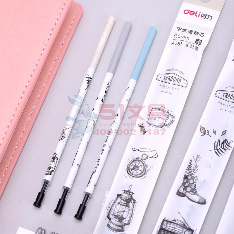 商品名称:得力A781,全针管中性笔芯 0.5mm黑色笔芯替芯水笔芯签字笔芯20支装 商品编号:11.03.09.0781 品牌:得力/deli 上架时间:2018-07-12 商品毛重:0克 价格单位:支 笔头类型:全针管 笔头粗细:0.5mm 包装含量:20/240/2880 如果您发现商品信息不准确,欢迎纠错;如果您发现有比51文具价格更低的,欢迎举报