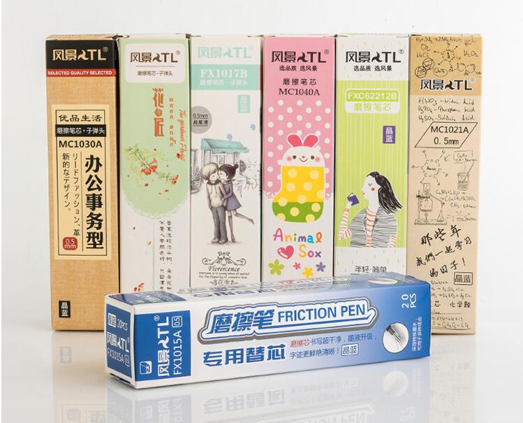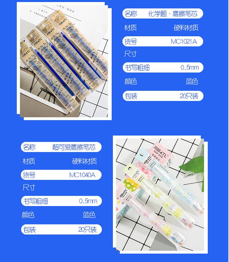 商品名称:风景文具1021A,0.5mm消失摩擦笔芯 魔磨擦水笔替芯 可擦笔芯消字笔芯 商品编号:38.01.02.1021A 品牌:风景 上架时间:2018-07-26 商品毛重:0克 价格单位:支 笔头类型:全针管 笔头粗细:0.5mm 包装含量:20/240/2880 如果您发现商品信息不准确,欢迎纠错;如果您发现有比51文具价格更低的,欢迎举报