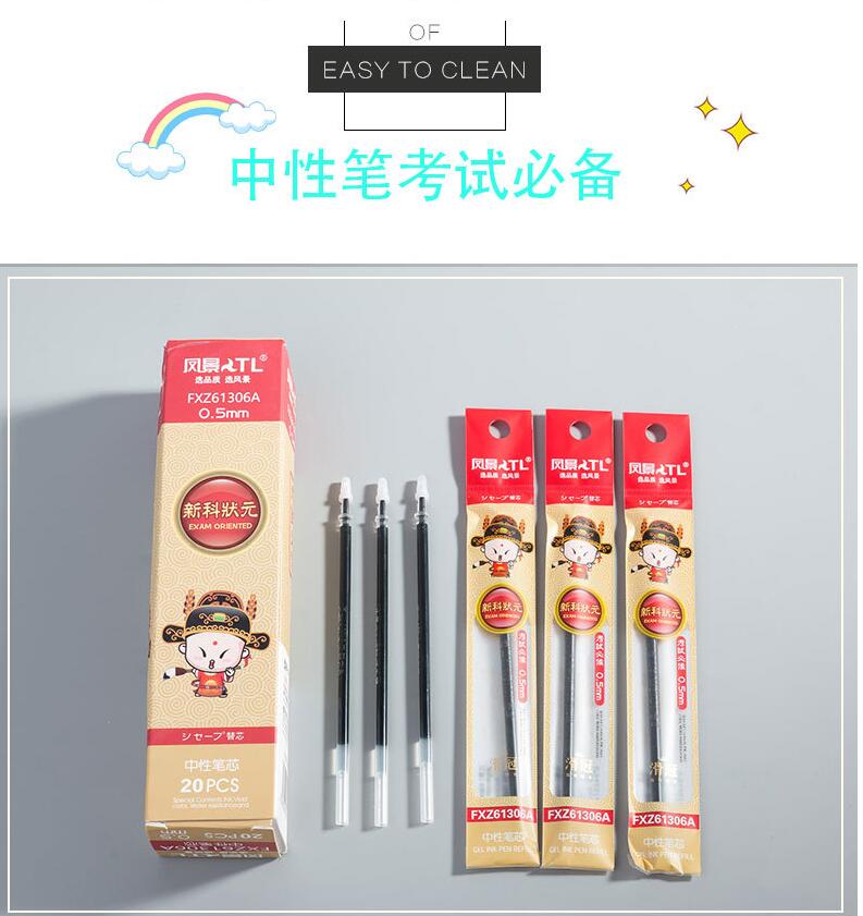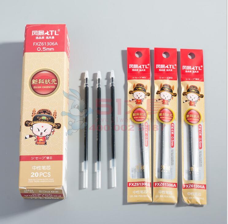 商品名称:风景文具61306A,0.5针管中性笔芯(一口价)学生考试专用黑色笔芯中性笔芯水笔替芯0.5mm签字笔笔芯 商品编号:38.01.02.61306 品牌:风景 上架时间:2018-07-26 商品毛重:0克 价格单位:支 笔头类型:全针管 笔头粗细:0.5mm 包装含量:20/240/2880 如果您发现商品信息不准确,欢迎纠错;如果您发现有比51文具价格更低的,欢迎举报